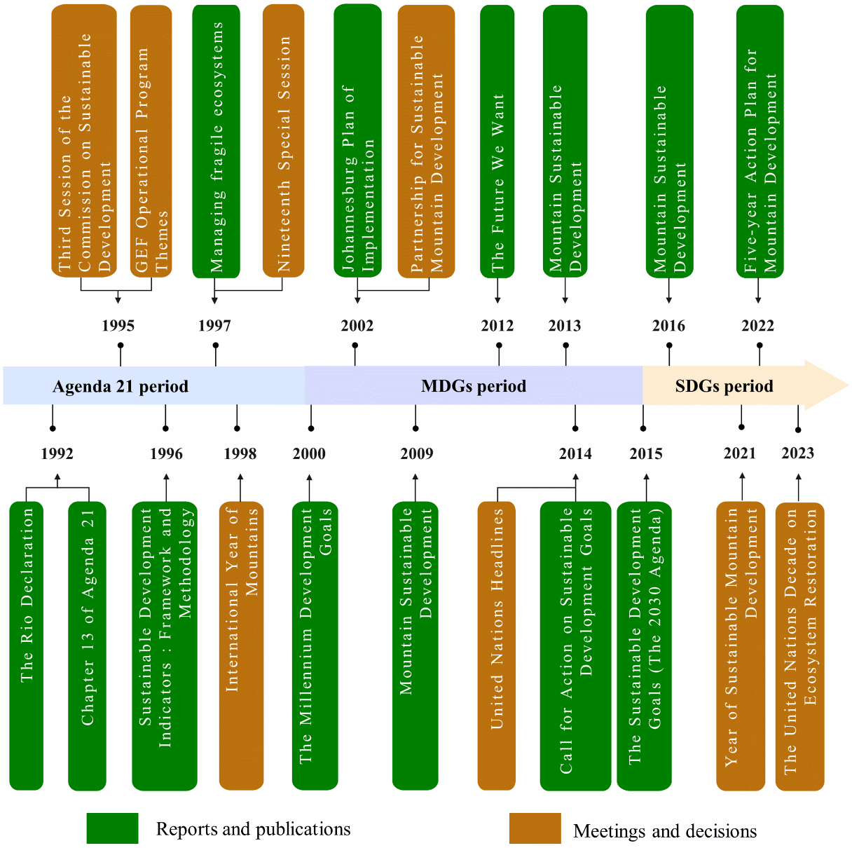 ????团队首先针对SDGs?;ど降厣低常?/span>SDG15.4)目标实现进程的遥感监测问题,系统剖析了山地可持续发展由概念向21世纪议程、联合国千年发展目标(MDGs)、联合国可持续发展目标(SDGs)指标构建的过程,基于文献计量分析方法,分析了SDG15.4遥感监测与评估进展,剖析了遥感技术实现SDG15.4监测的问题和挑战,深入解析了SDG15.4指标的局限性,讨论了SDGs指标体系山地指标的相关性。研究结果表明,当前山地SDGs监测研究主要集中在:(1)监测系统,包括指标、数据选择、山地特征整合以及时空格局变化;(2)可持续性评估,涉及山地可持续发展框架的本地化指标交叉和综合;(3)可持续性机制,探索人类活动和气候变化与山地SDGs指标之间的不确定性、敏感性和反馈机制。