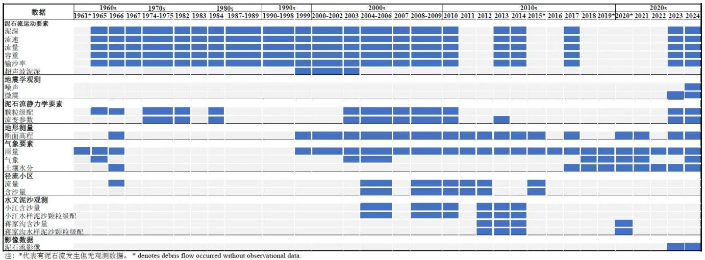 ????近日,成都山地所发布国际上时间跨度最长、要素最全的泥石流及其环境综合观测数据集。该数据集覆盖1961年至2024年,基于云南东川泥石流国家野外科学观测研究站(中国科学院东川泥石流观测研究站)的长期观测,详细记录了278次泥石流事件,包含17,001阵次泥石流运动学参数,并提供了泥石流物理力学参数、泥石流微震监测数据、沟道断面高程测量数据及泥石流实时视频资料。