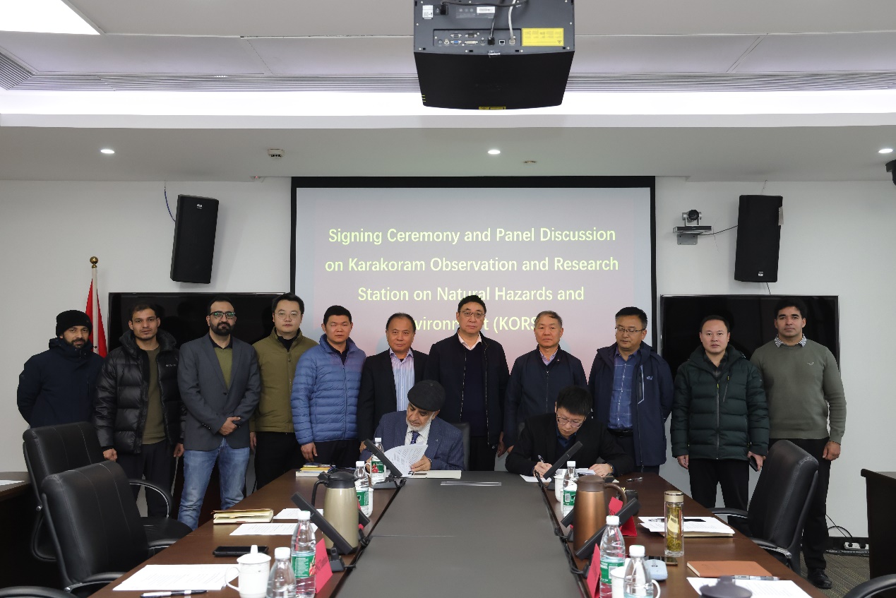 ????2月19日,中国科学院中国-巴基斯坦地球科学研究中心(简称“中巴中心”)与巴基斯坦喀喇昆仑国际大学签署合作协议,共建喀喇昆仑环境灾害观测研究站??ヂ毓蚀笱3ぐ⑺诶ど嘲ⅲˋttaullah Shah),成都山地所所长康世昌,中巴中心主任苏立君、常务副主任兼首席科学家崔鹏院士、副主任雷雨等出席活动?;嵋橛芍葱兄魅魏樘旎鞒?。