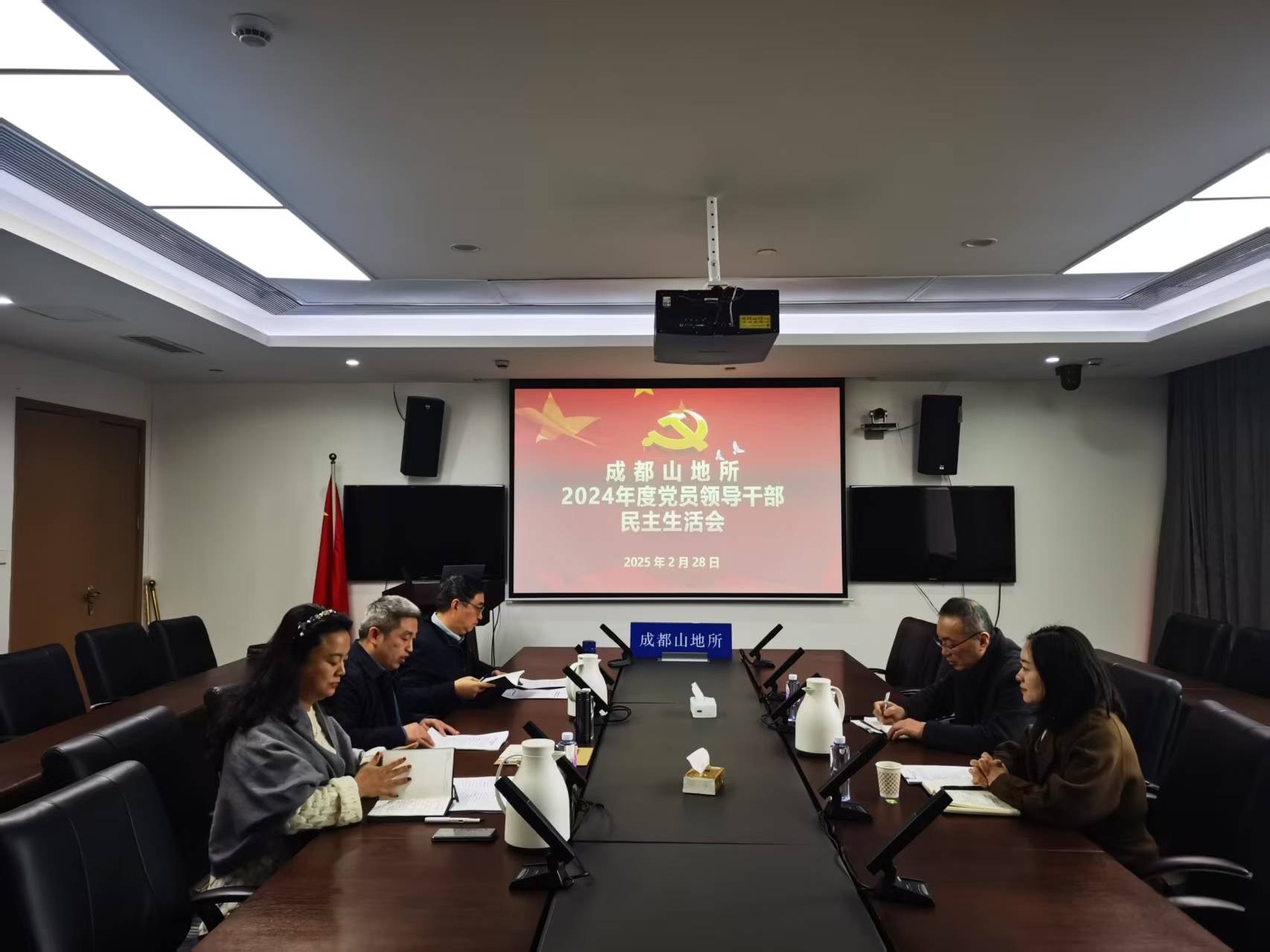 2月28日,成都山地所召开2024年度党员领导干部民主生活会。成都分院分党组成员、副院长刘庆和成都分院党建工作处有关同志到会指导?;嵋橛傻澄榧恰⒏彼ぬ范嗖浦鞒?,所长康世昌、纪委书记周鹏浩参加会议。