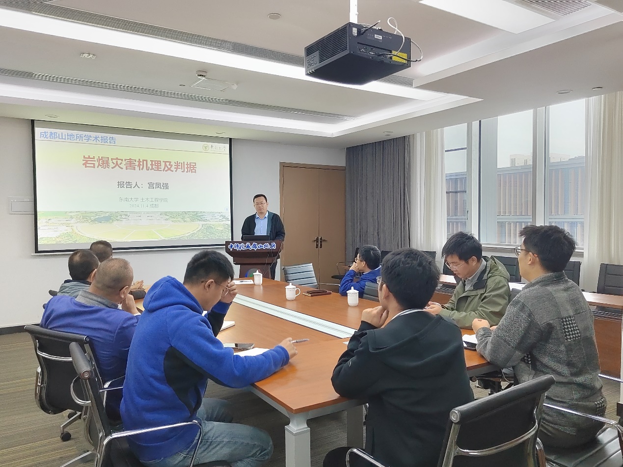????11月4日,中国科学院青年创新促进会成都山地所小组举行山地科学大讲堂第三期活动,邀请东南大学宫凤强教授作了题为“岩爆灾害机理及判据”的学术报告。山地自然灾害与工程安全重点实验室(中国科学院)副主任欧阳朝军及10余人科研人员聆听了报告。青促会山地所小组组长栗帅副研究员主持报告会。