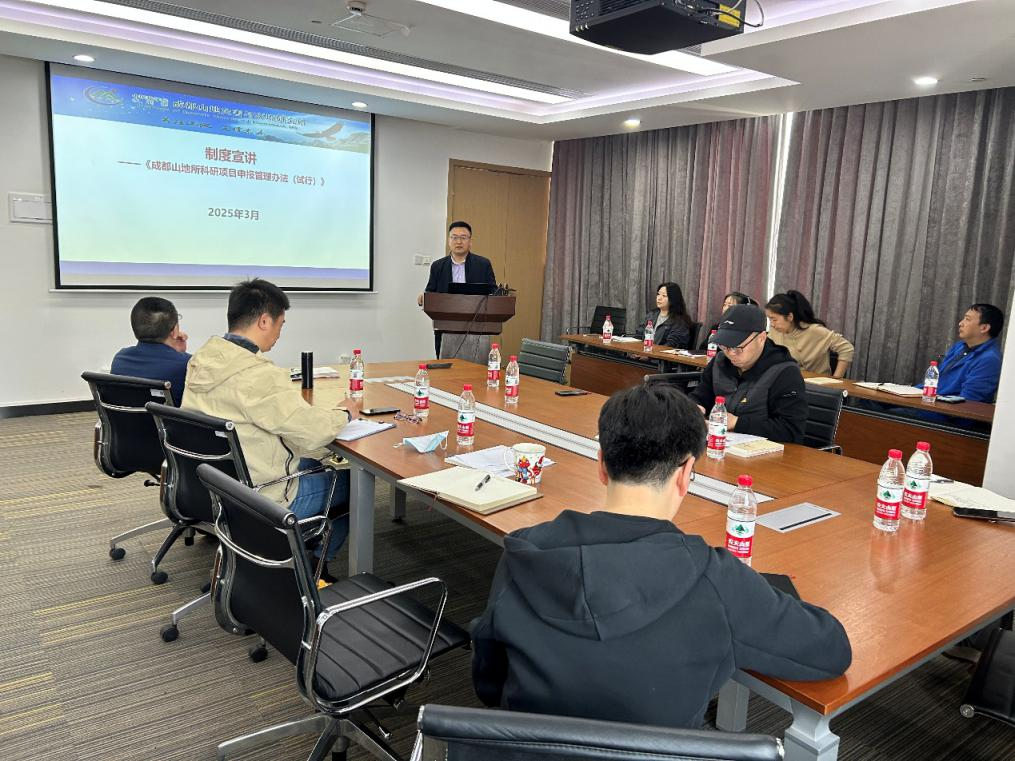 王道杰首先讲解了抢占科技制高点的大背景下“三项制度” 的重要意义。随后,科技处处长葛永刚针对《成都山地所科研项目申报管理办法(试行)》进行了详细解读,明确了科研项目申报的具体要求。人教处处长代丹对《成都山地所工作人员兼职管理实施细则》及《关于加强岗位工作纪律管理的通知》两项制度展开了细致的讲解,进一步强化了大家岗位工作纪律意识
