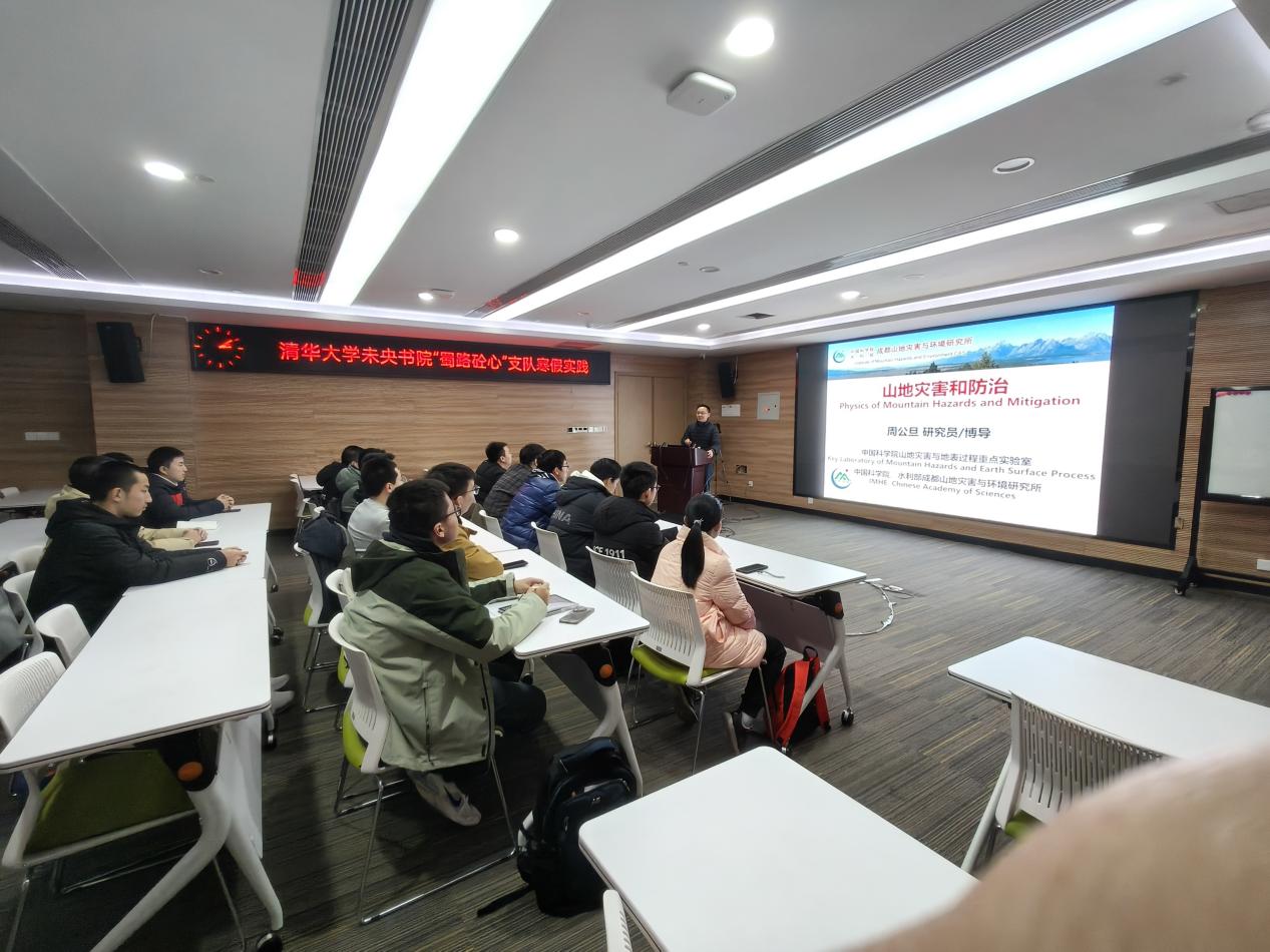 ????2月9日,清华大学未央书院的“蜀路砼心”支队 17 名学生到访成都山地所,开展寒假实习实践活动。