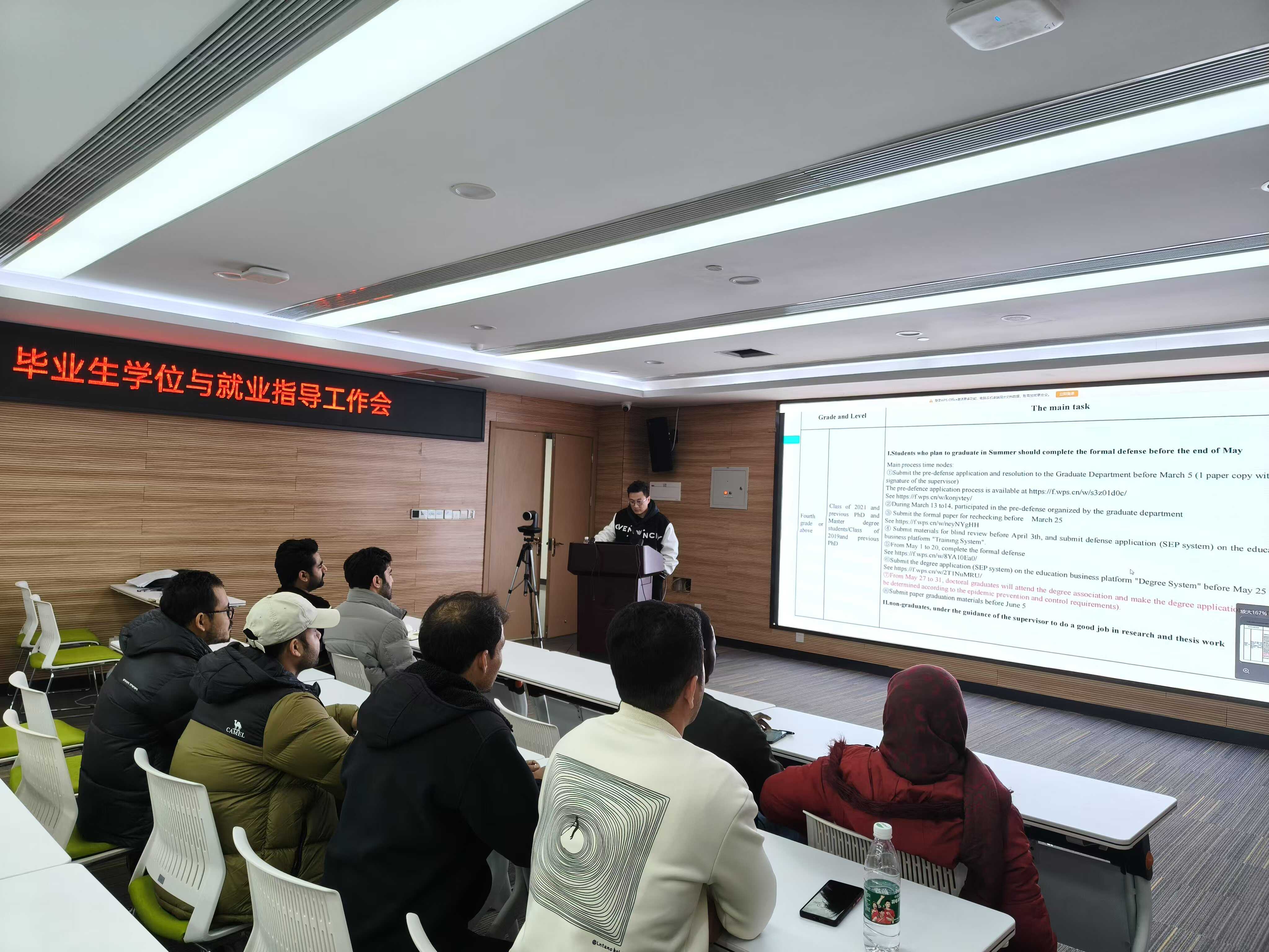 ????研究生部教育主管张静雯介绍了从就业准备到签署协议再到离所办理等就业过程中的注意事项,并介绍了研究所近年来毕业生就业去向,帮助学生缓解就业焦虑。教育主管刘列克为留学生进行了夏季毕业时间节点和流程,预答辩和答辩一站式服务链接,让留学生们更清晰的了解申请学位注意事项。