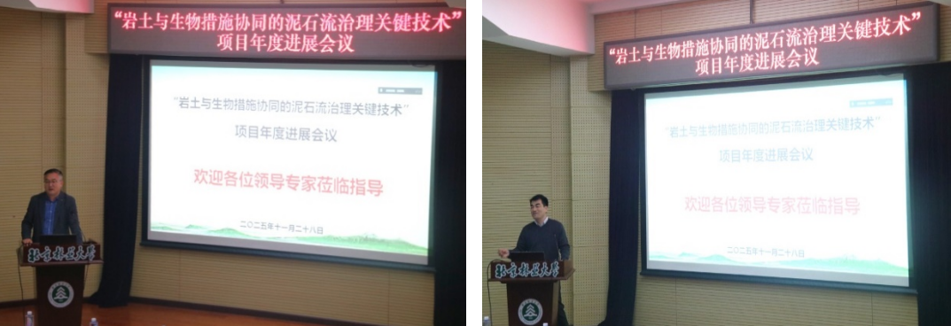 ????11月28日,国家重点研发计划项目“岩土与生物措施协同的泥石流治理关键技术”2025年度进展会议在北京林业大学召开?;嵋槿险孀芙崃?025年度工作进展、阶段性成果以及2026年度工作计划?;嵋橛上钅壳M返ノ恢泄蒲г撼啥忌降厮橹翁獬械5ノ槐本┝忠荡笱С邪?。成都山地所科技处处长葛永刚研究员、中国地质调查局水文地质环境地质调查中心张发旺研究员共同主持会议。